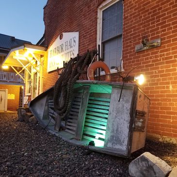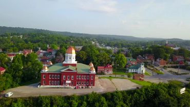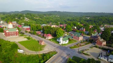 Our drone taking off from the Harbor Haus! Look at the beautiful Missouri River and Hermann downtown area!